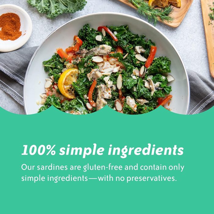 • 100% SIMPLE INGREDIENTS: Our sardines in olive oil are gluten-free and contain only simple ingredients—with no preservatives.