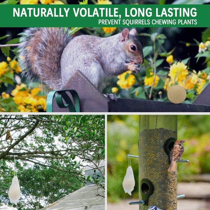 • LONG LASTING EFFECTIVE – The squirrel repellents deliver long lasting scent, cause mild irritation to squirrels when they close to the repellent, naturally volatilize and keep getting smaller, last about 60-90 days.