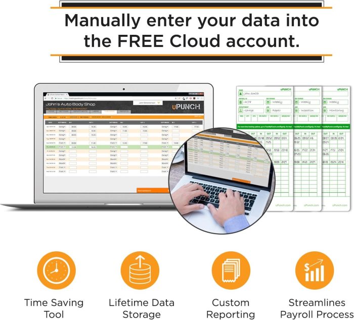 • Easily track your employees’ start times, break times, lunch times, and finish times with the uPunch Auto Align Time Clock.